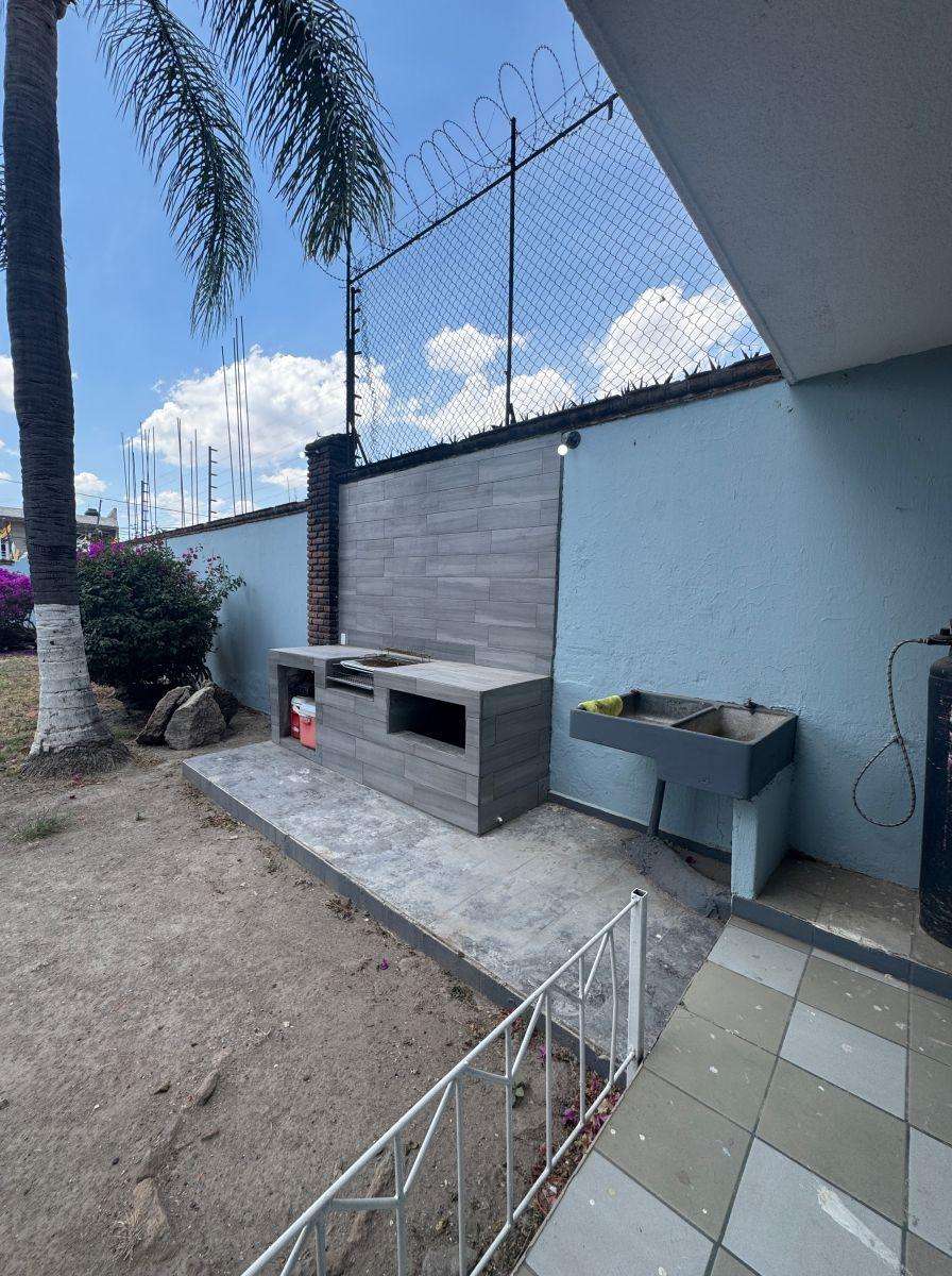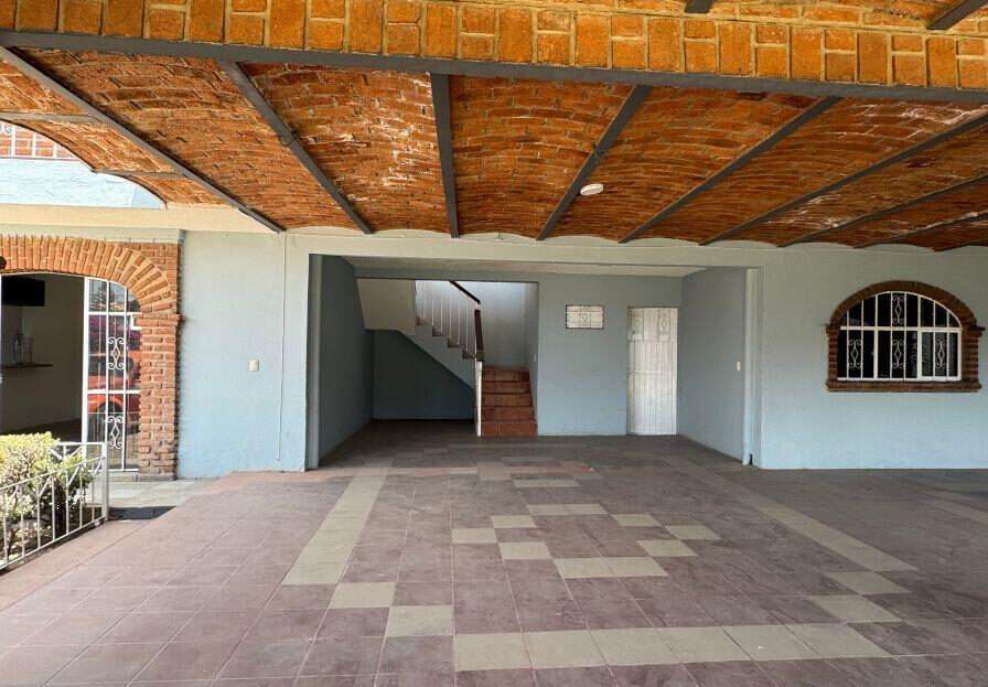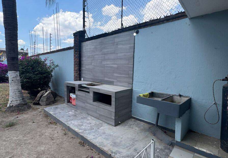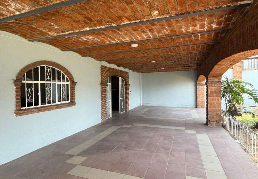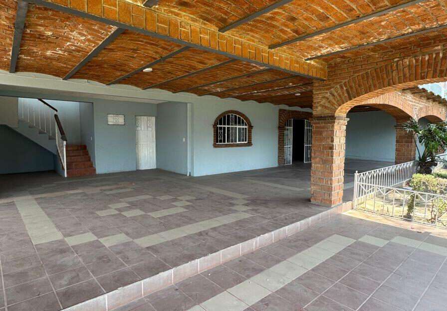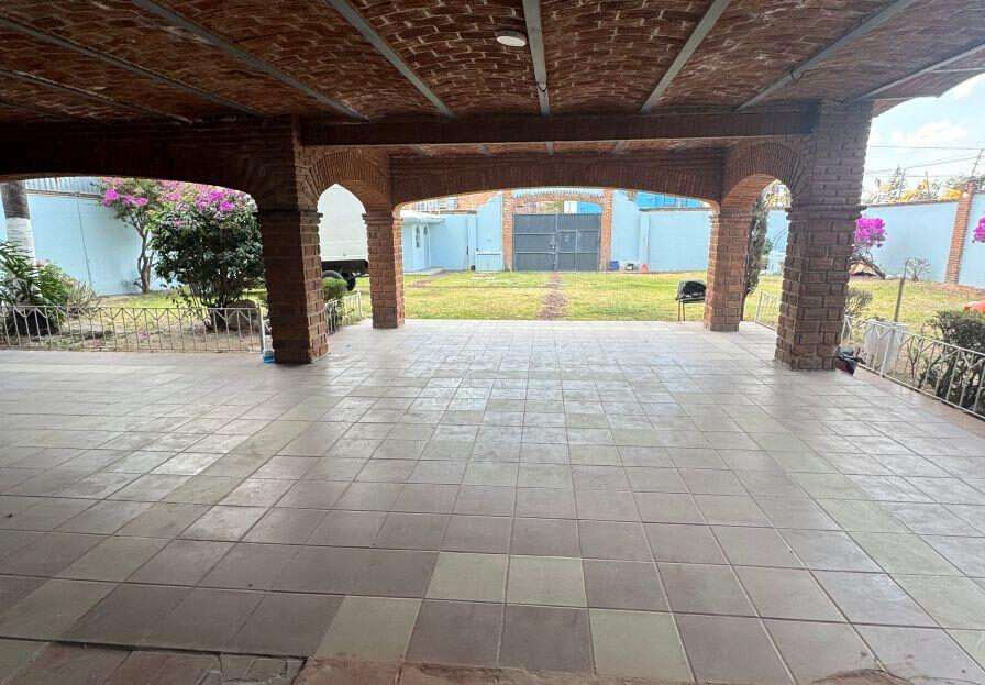 Al entrar encuantras un jardín grande, baños en el exterior y un asador para tus reuniones y terraza techada al frente de la casa.