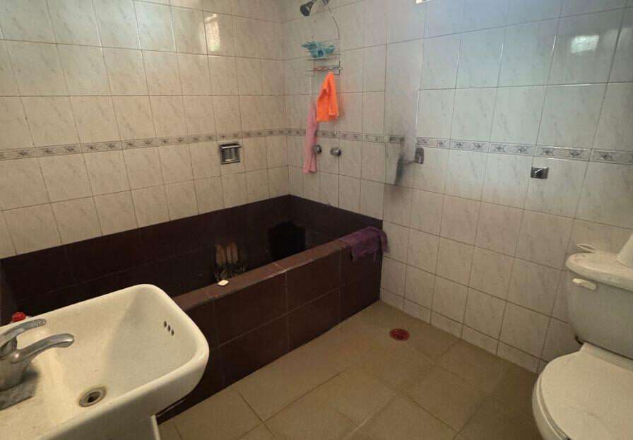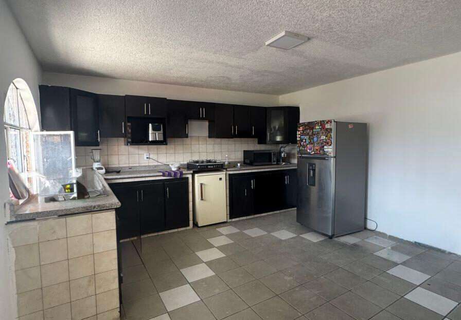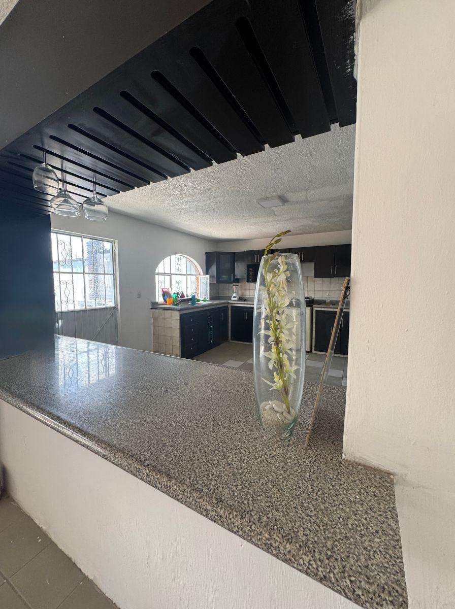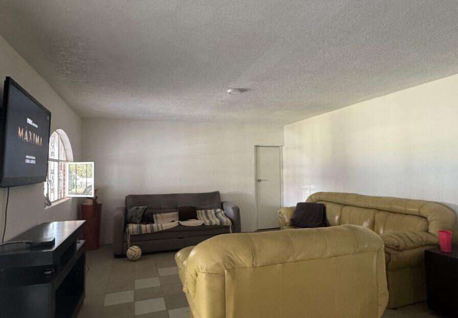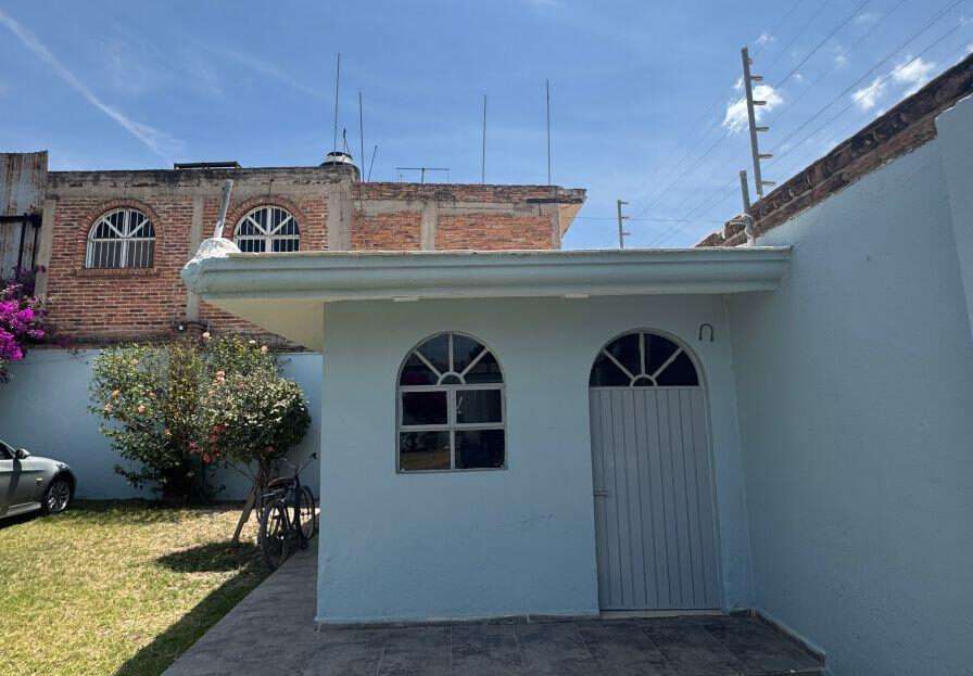 Al entrar encuantras un jardín grande, baños en el exterior y un asador para tus reuniones y terraza techada al frente de la casa.
