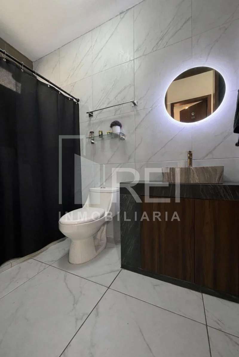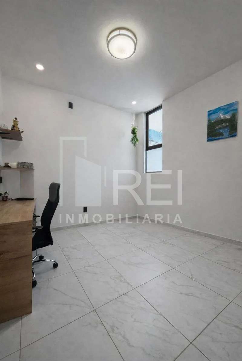 Planta baja: habitación, baño completo, cocina integral con barra de granito vía láctea , muebles en nogal americano, alacena muy amplia, sala comedor espaciosos y bien iluminados, patio de servicios.
