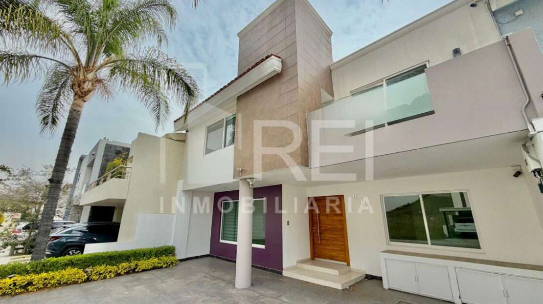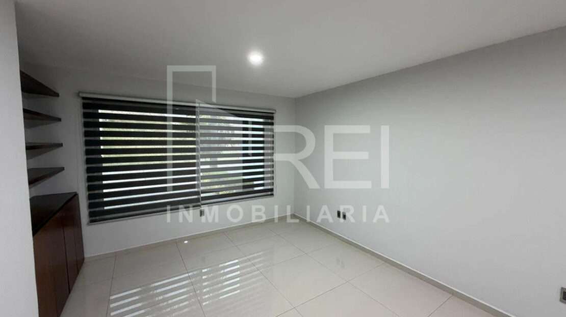 5 recamaras, 1 de ellas en planta baja, todas con baño completo, cocina integral con isla, estar TV, estudio, fuente interior, bar para dar servicio a sala comedor, AC, cortinas, circuito cerrado, cochera 3 autos.