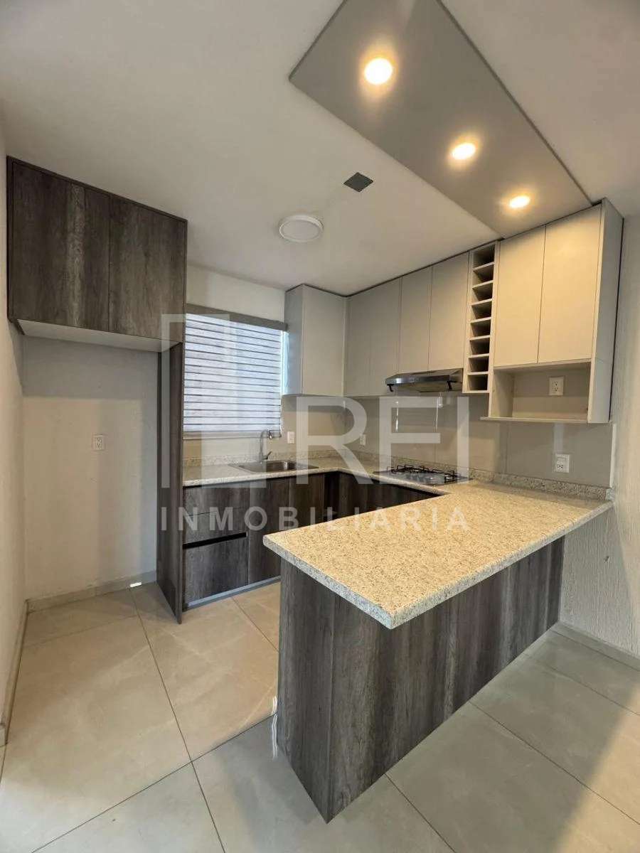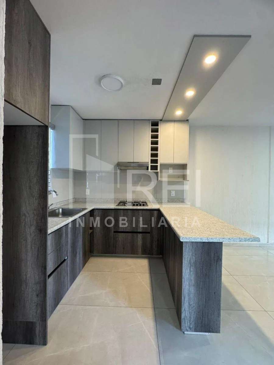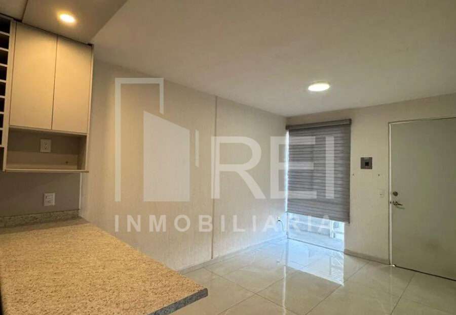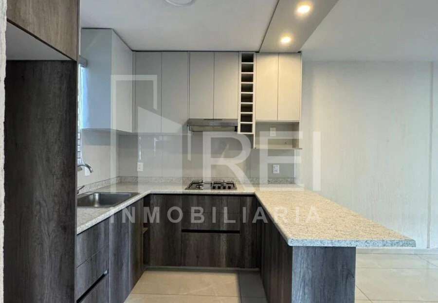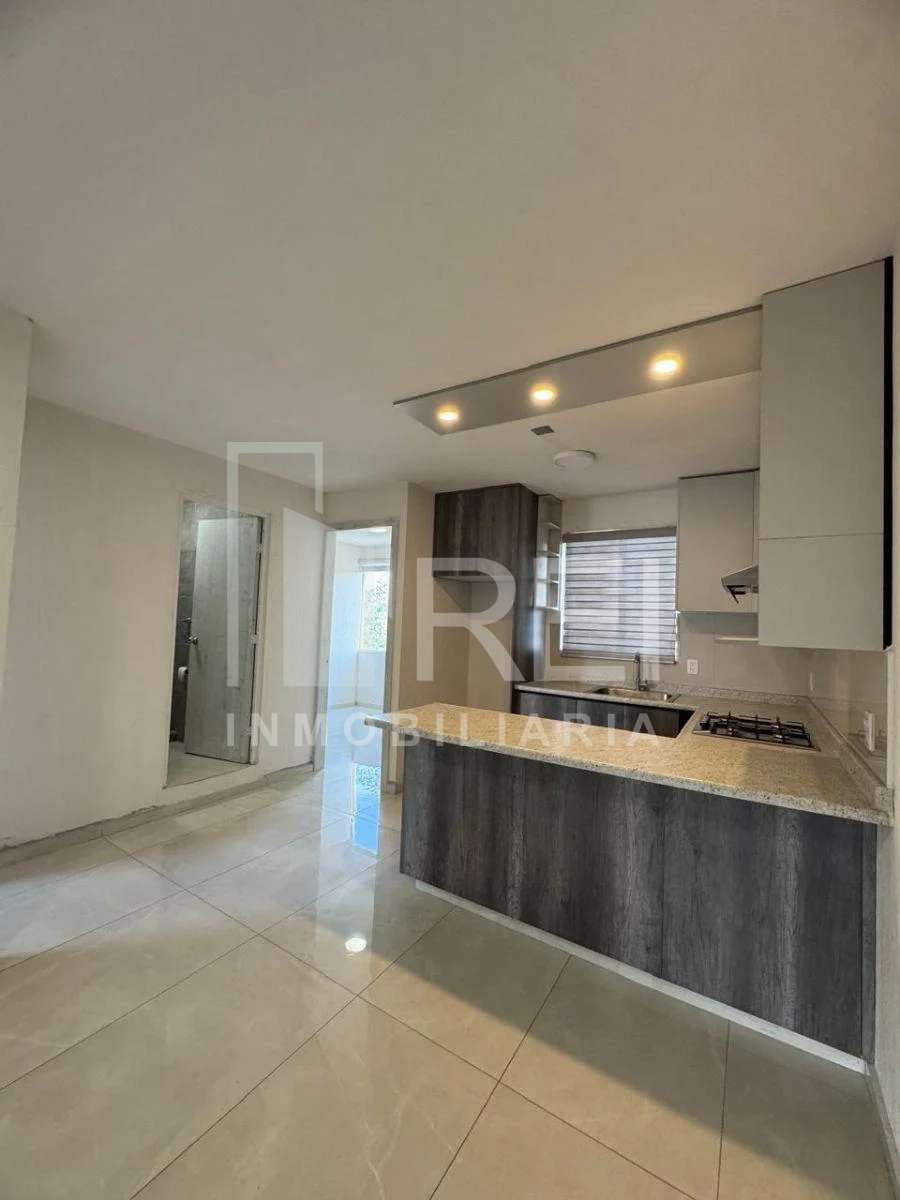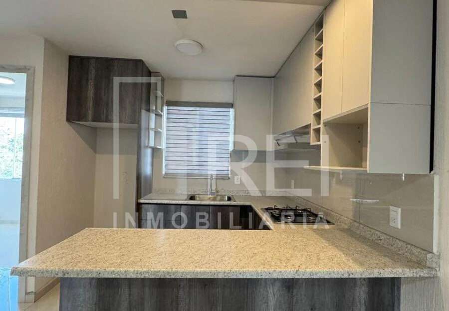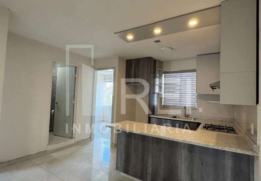 El departamento cuenta con dos recamaras, un baño completo, área de lavado, sala comedor, cocina integral con parrilla y campana de extracción, también cuenta con un cajón de estacionamiento. Todos los ventanales cuentan con persianas y pisos de porcelanato.
