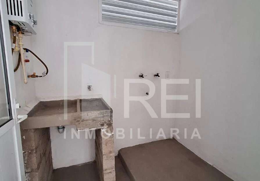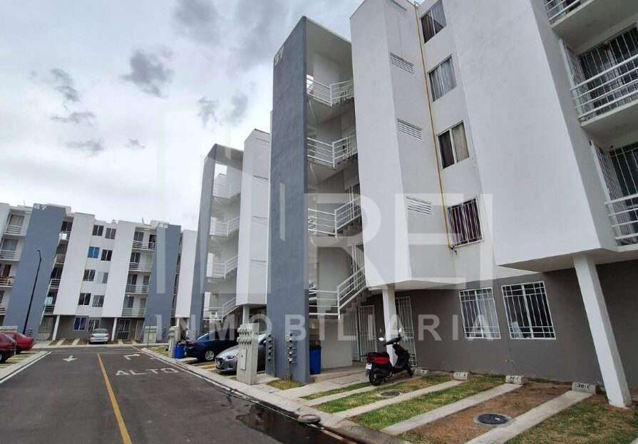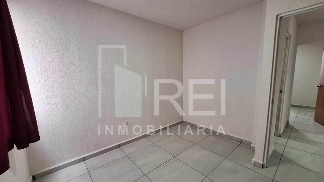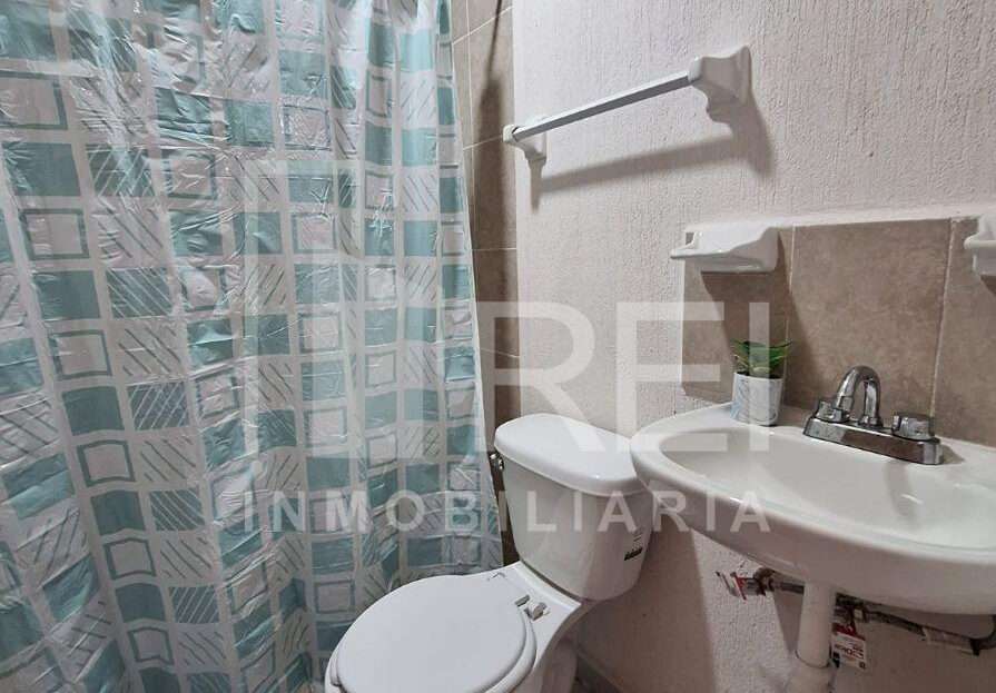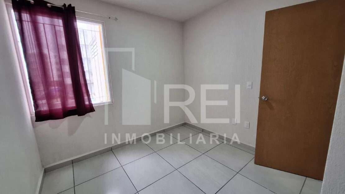 Esta en el primer piso, cuenta con sala, comedor, área de cocina, dos recamaras, baño completo, área de lavado y cochera para un auto. El departamento tiene tanque estacionario, protecciones, algunos muebles de cocina y cortinas.