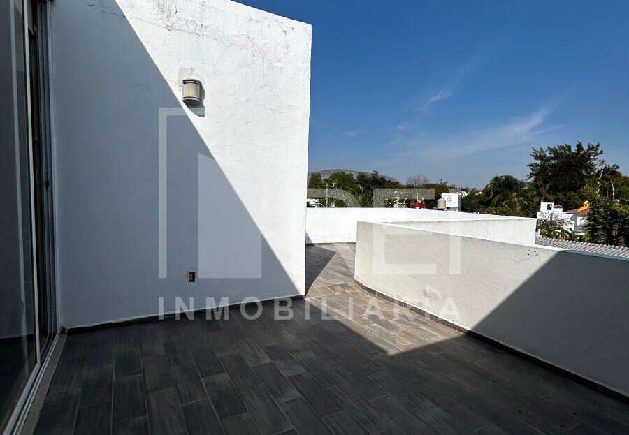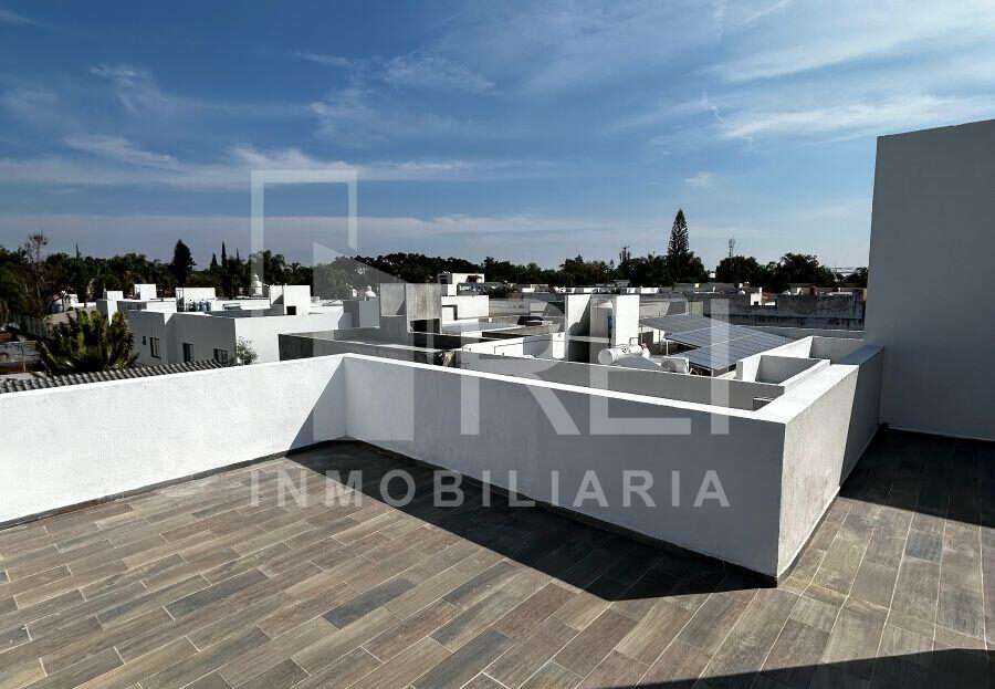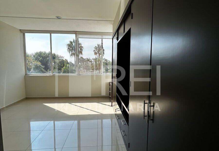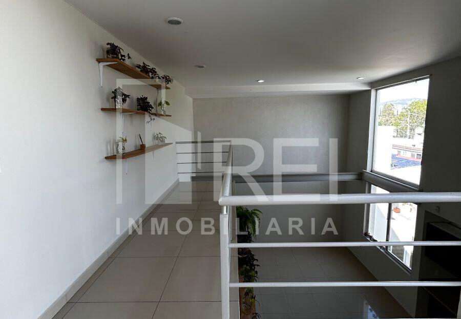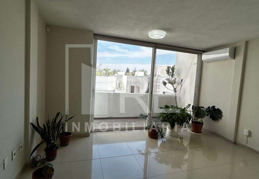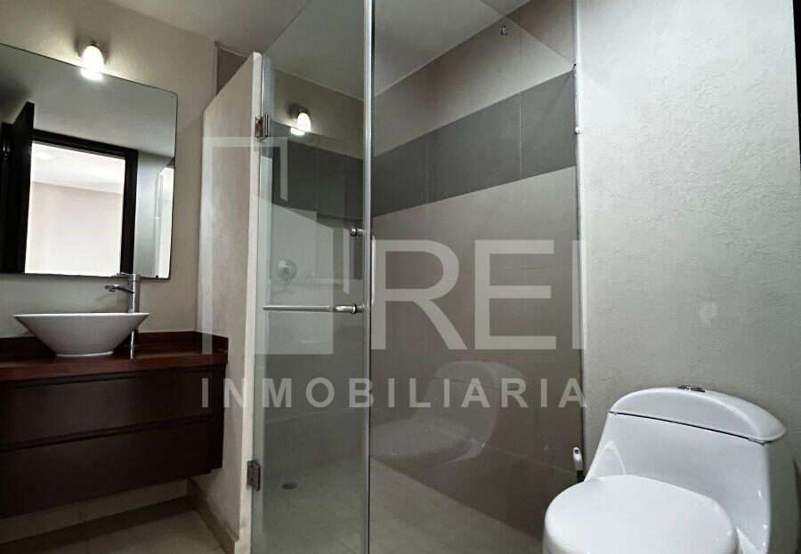 PA: recámara principal con amplio clóset, baño completo y Aire acondicionado, espacio para escritorio y amplia terraza con vista panorámica a la ciudad.