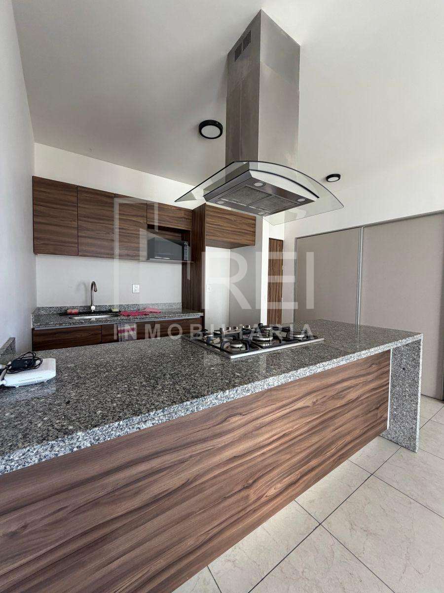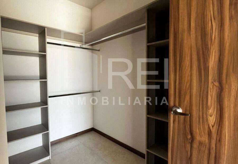 Cajones en batería para dos auto techado, cocina integral con estufa y campana, comedor con vista al balcón, cuarto de lavado, habitación principal con vestidor y baño completo, habitación secundaria con closet, baño completo.
