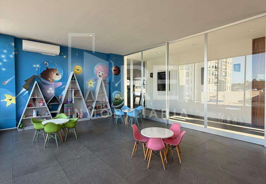 Amenidades: alberca, jacuzzi, asoleaderos, cancha de pádel, gimnasio equipado, sala de cine, petpark, ludoteca, áreas verdes, espacio de coworking, salón de eventos.
