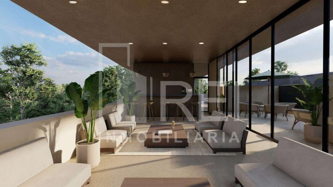 La cocina integral equipada, luminosa y con los mejores acabados y equipo se integra perfectamente al área social, ofreciendo un ambiente moderno y rodeado de vegetación.