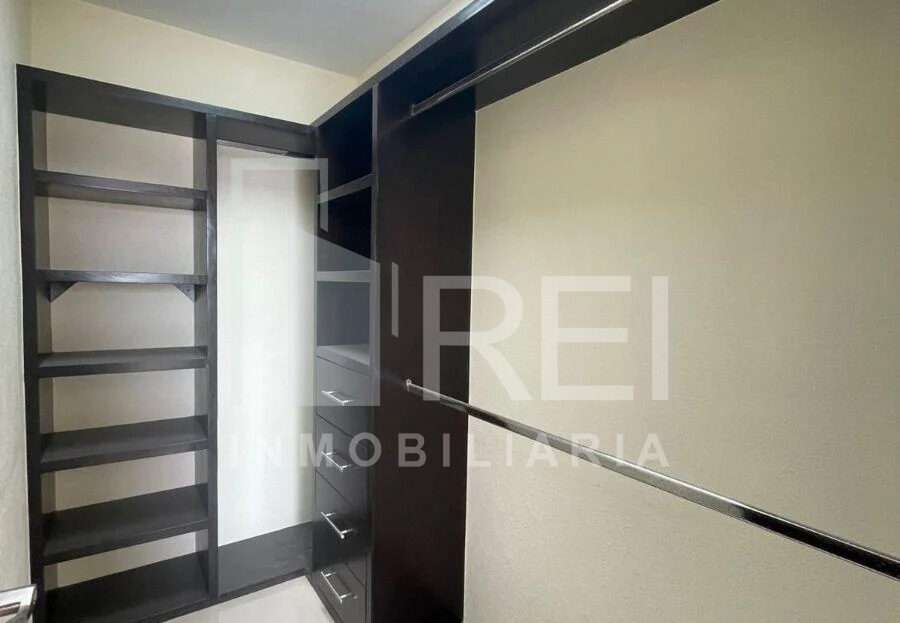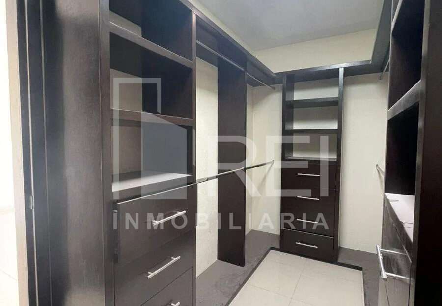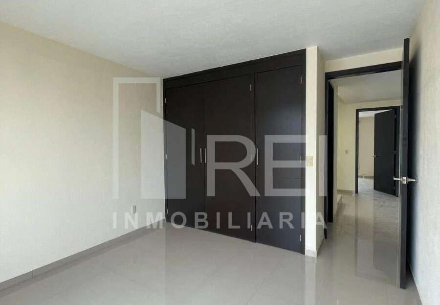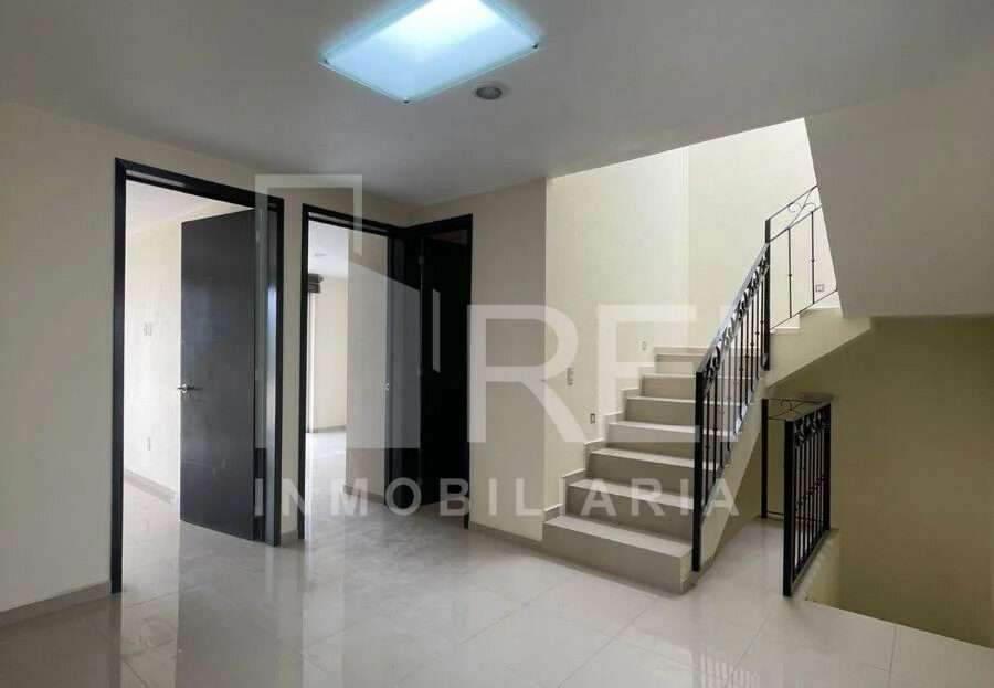 Estudio o estar de televisión, recamara principal con vestidor y baño, dos recamaras secundarias compartiendo un segundo baño, y una área de bodega.