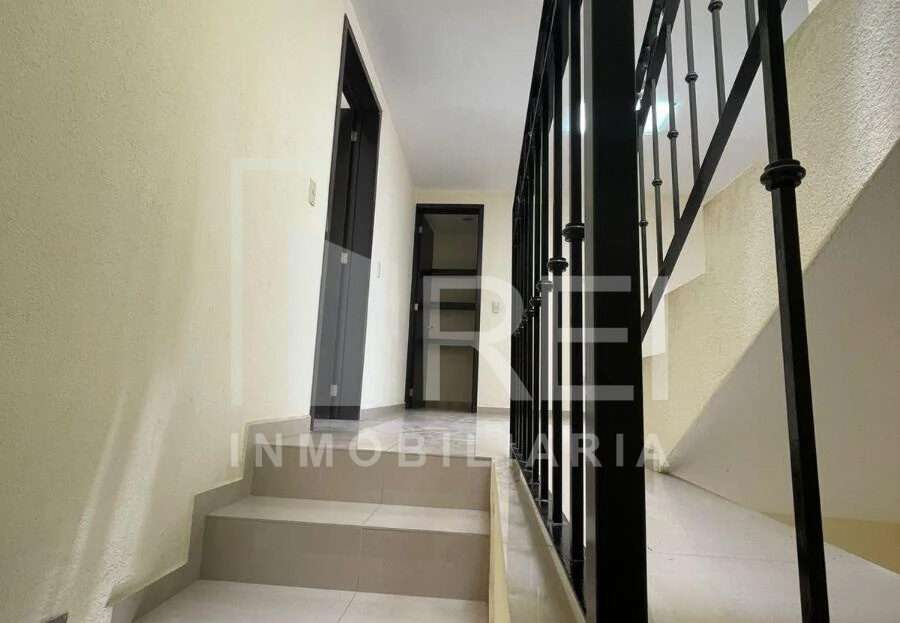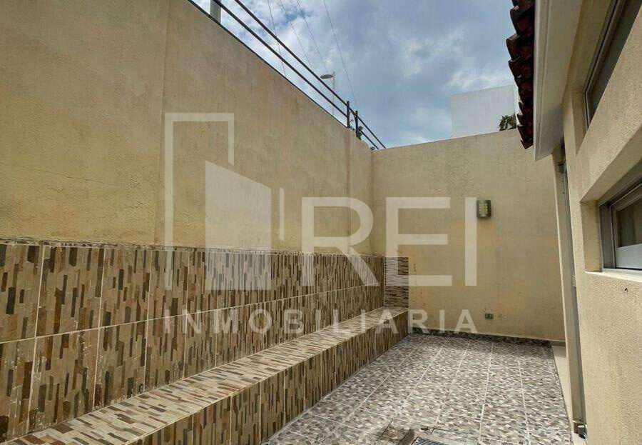 Cochera para dos autos, sala comedor, habitación, baño completo, cocina integral, área de lavado y amplio patio posterior.