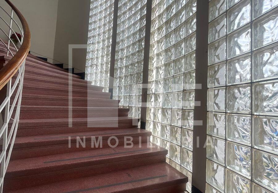 – Gran distribuidor central con escaleras voladas y ventanal de gran formato