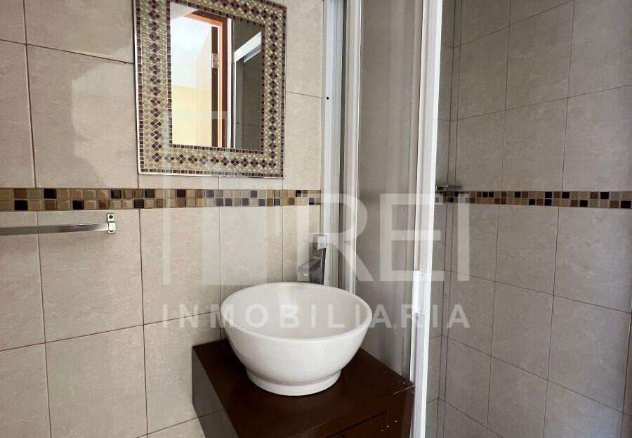 Planta baja: sala, comedor, cocina integral, espacio para almacenar, baño completo, área de lavado techada.