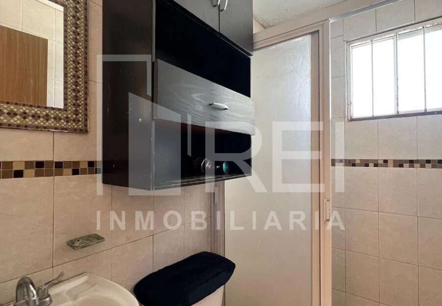 Planta baja: sala, comedor, cocina integral, espacio para almacenar, baño completo, área de lavado techada.