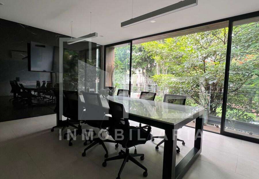 Cuenta con lobby, terraza, roof garden, sala de juntas, baños independientes de hombres y mujeres , el acceso es digital. Se encuentra frente a parque por lo cual tendrás mucho estacionamiento para ti y tus clientes.