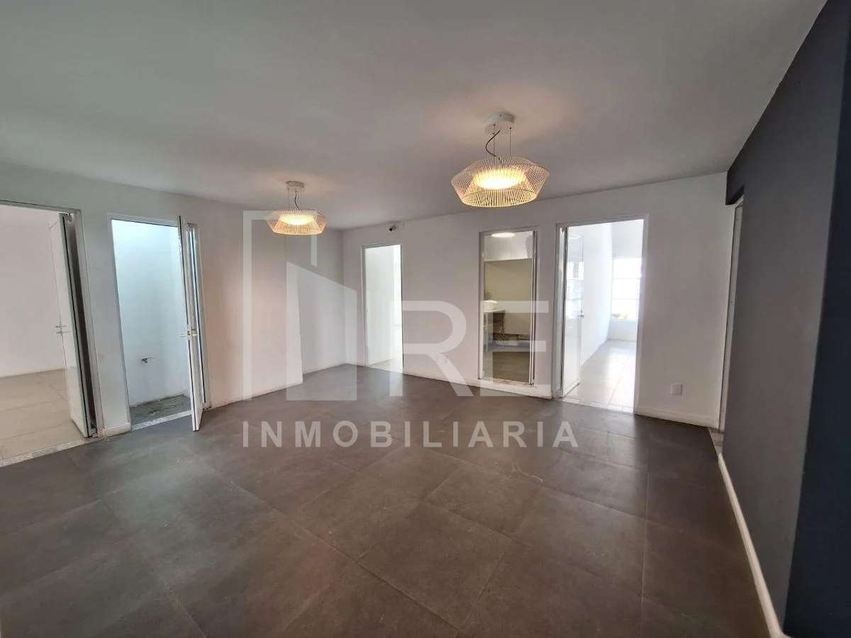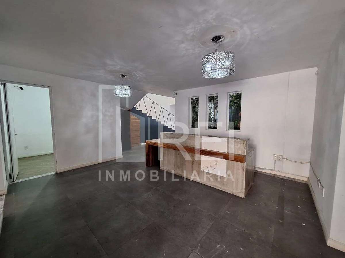 Planta baja: Recepción, dos oficinas privadas una con baño, dos espacios muy amplios para subdividir si así lo requieren, dos baños comunes, amplio jardín y cochera.