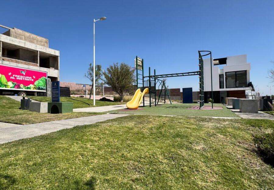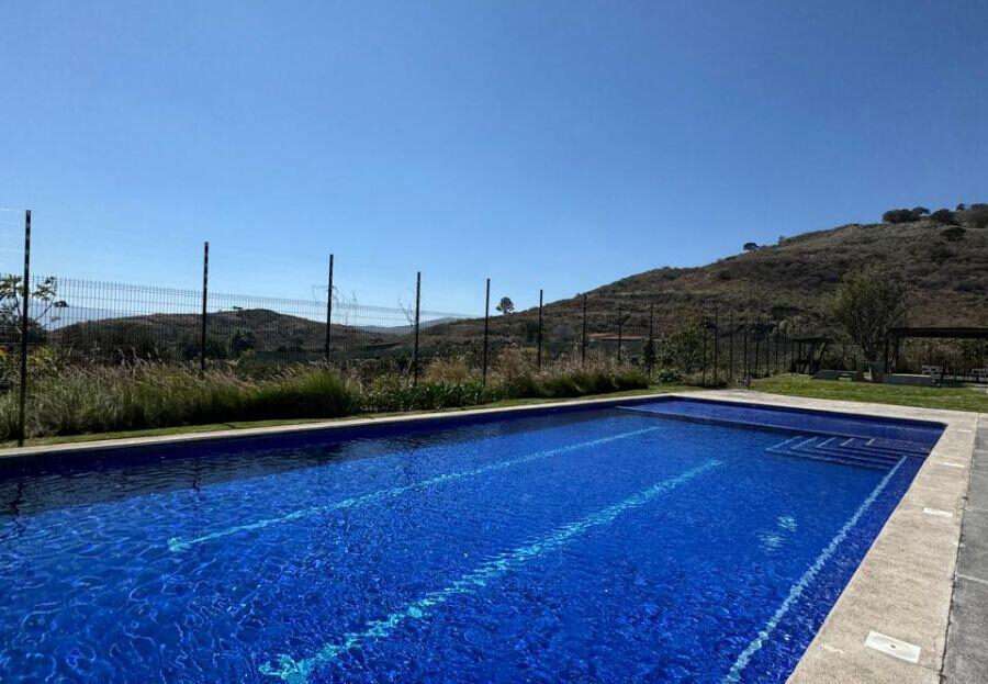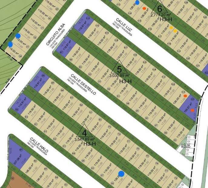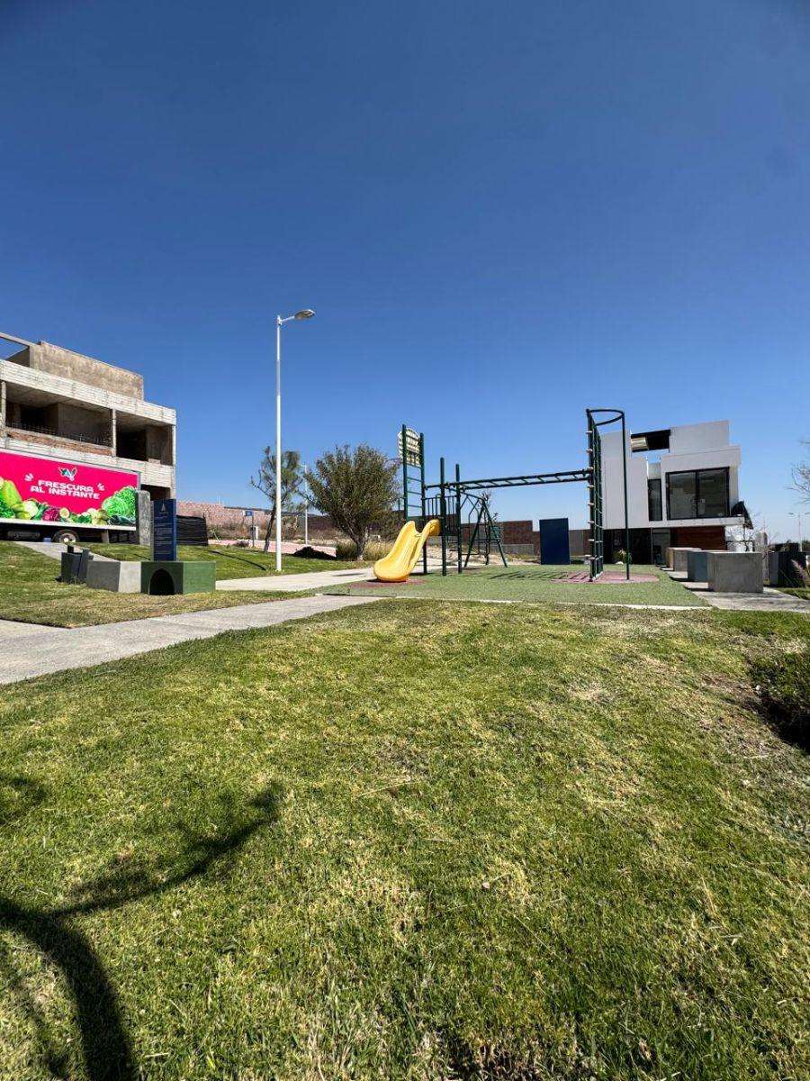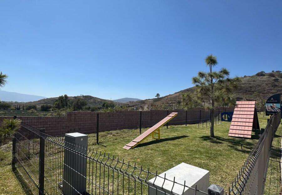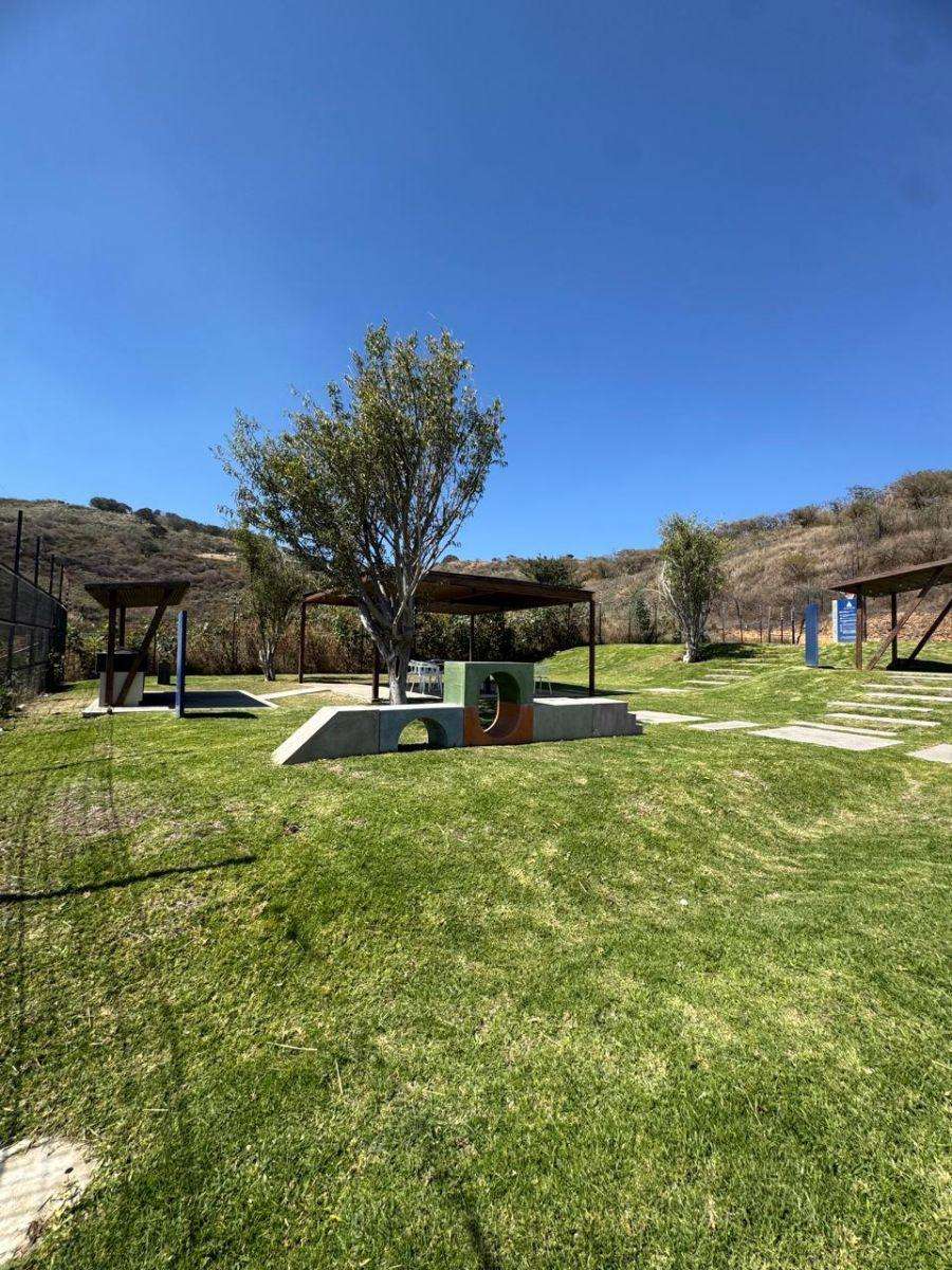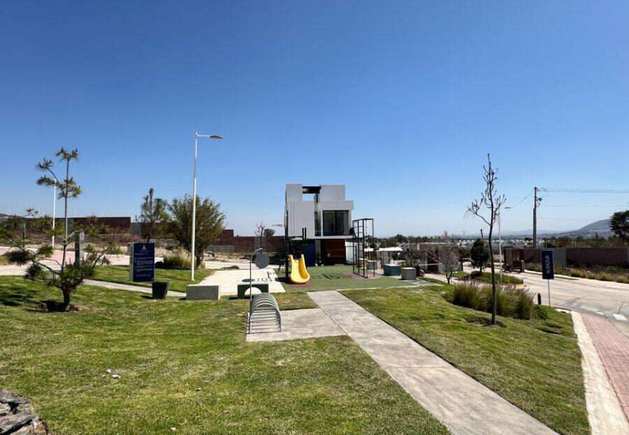 Lote regular cuenta con una superficie de 119m2 (7×17), colinda con muro perimetral y su vista frontal es hacia calle, no tiene vecino enfrente. El lote esta sobre Circuito Alba en la parte más alta del Condominio por lo que tiene una vista muy bonita al cerro.