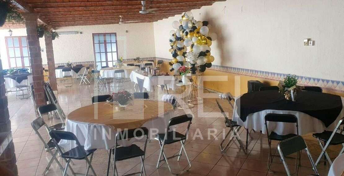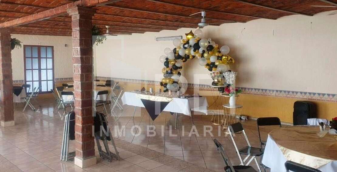 Uso de suelo comercial, con infraestructura techada existente y permiso vigente para salón de eventos con bebidas alcohólicas.