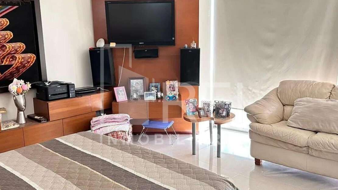 Recámara principal con walk-in closet y baño completo, 2 recámaras secundarias con closet y baño propio. Amplio jardín con alberca climatizada con energía solar y paneles solares para eficiencia energética. Cuenta con una terraza con vistas espectaculares y mucha vegetación ideal para reuniones. En planta baja tiene un espacio versátil: sala de TV, juegos, bar y recámara con baño.
