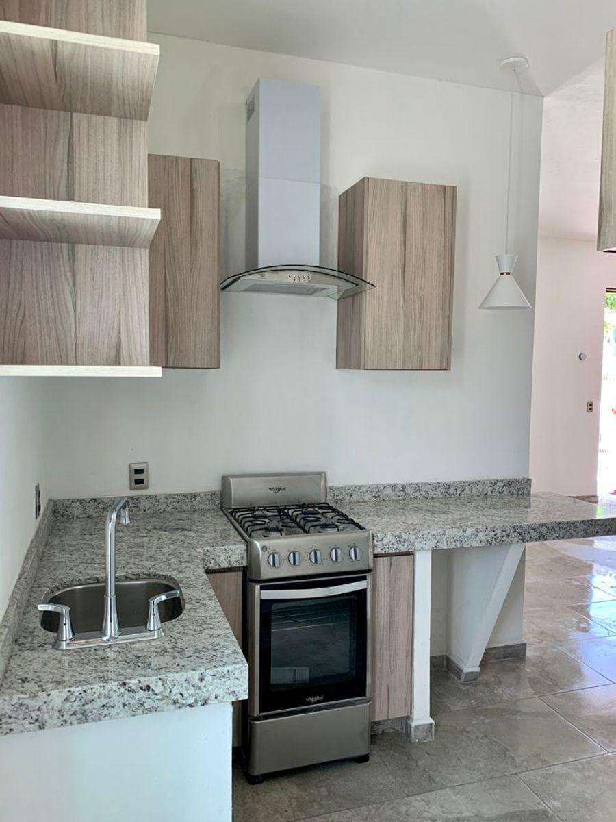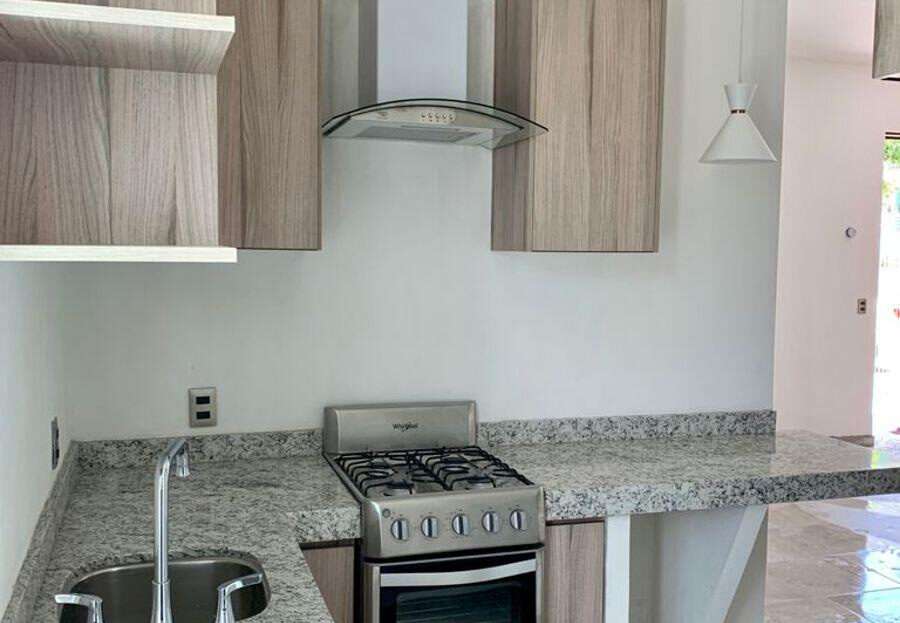 sala-comedor con buena iluminación natural, Cocina integral con barra de granito, Área de servicio integrada con boiler y lavadero, 1 baño completo con barra de granito, espejo y cancel de cristal templado, 3 recámaras con clóset.